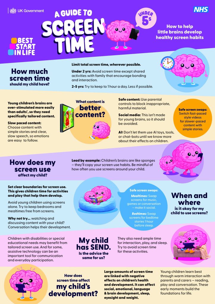 Digital screens are now a normal part of family life. The early years are however critical for development – 90% of a child’s brain development occurs by age 5, making it a critical period for the development of social, emotional and cognitive skills. Consequently, on Friday 27 March, the government published new, evidence-informed guidance to help parents and carers of children under 5 navigate screen time.